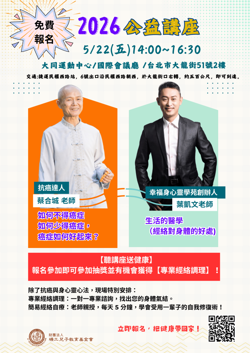 2026 年必聽的健康盛事!我們特別邀請到兩位重磅名師,聯手揭開「身心自癒」的關鍵密碼: